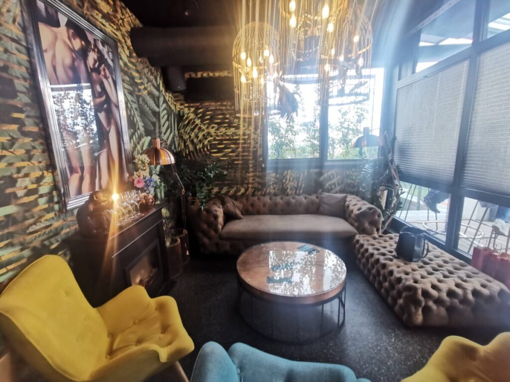 Celoten ambient lokala je precej edinstven, saj deluje kot urbana džungla visoko nad starim jedrom. Zasnovala ga je arhitektka Andreja Medvedič in vsekakor vam bo ostal v spominu. Z njihove terase se odpira panoramski razgled nad mesto in vršace.