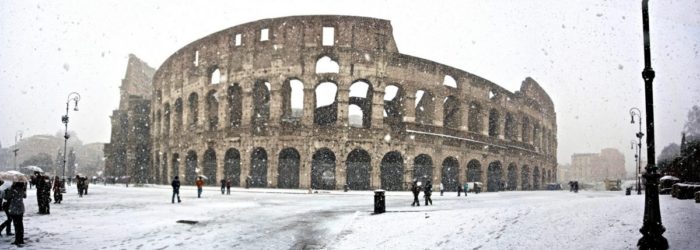 Italijansko prestolnico redko pobeli sneg – nazadnje so ga videli leta 2012, začetek tega tedna pa je to zgodovinsko mesto spet ovila bela odeja. Tudi v Rimu je snežilo in Italijani na belo pošiljko niso bili nič bolj pripravljeni od vedno presenečenih vzdrževalcev slovenskih cest, kot se radi pošalimo. A šalo na stran. Če se … Nadaljujte z branjem Pobeljen in ohromljen Rim: Redek pojav prinesel imenitne fotografije Preberi več