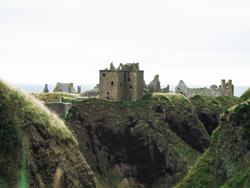 Začeli smo pri gradu Dunnottar. Njegove ruševine se mogočno dvigajo z vrha visokega klifa, ki je s treh strani obdan z morjem. Praktično neosvojljiva utrdba, ki so jo Angleži neuspešno napadali kar osem mesecev in kjer so v kriznih časih hranili Škotske kraljeve dragulje, bolj kot na nek resničen kraj spominja na fiktiven kraj iz Igre prestolov. Veter, ki je odganjal dež, nam je žal preprečil, da bi grad preleteli tudi z dronom in naredili kakšne res nore fotografije.