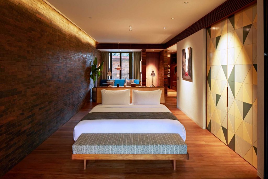 Interier je rezultat sodelovanja s singapurskim dizajnerskim studiem, ki je sobe opremil z več kot sto kosi pohištva sodobnih indonezijskih oblikovalcev, v sklopu hotela pa najdete tudi trgovino, v kateri lahko podobna dela lokalnih oblikovalcev tudi kupite.