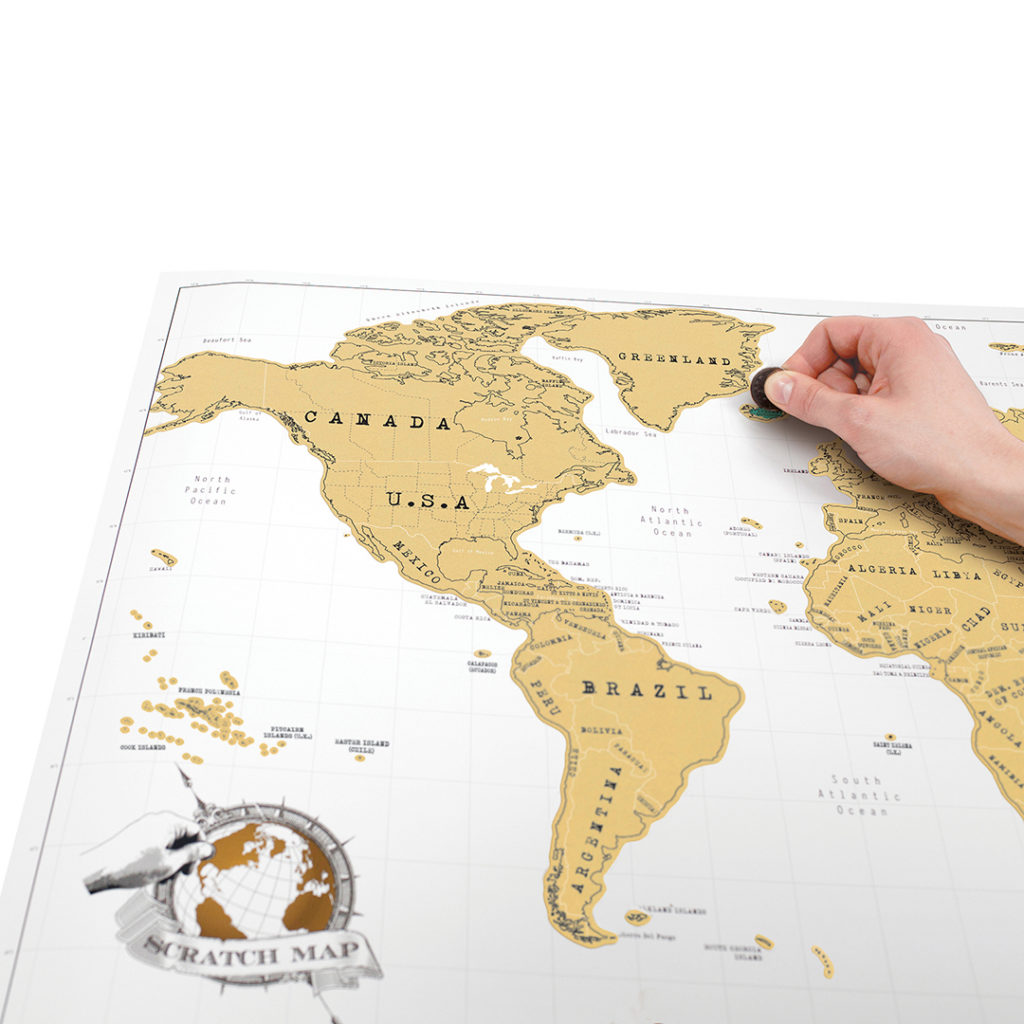 Vsak popotnik si gotovo želi zabeležiti vse države, katere je že obiskal. To bo najlažje storil, če mu za letošnji božič podariš zemljevid s premazom, ki ga lahko odstraniš tako, da popraskaš po površini podobno kot pri hitrih srečkah. Zemljevid lahko naročiš preko spleta ali obiščeš trgovino Flet v Ljubljani.