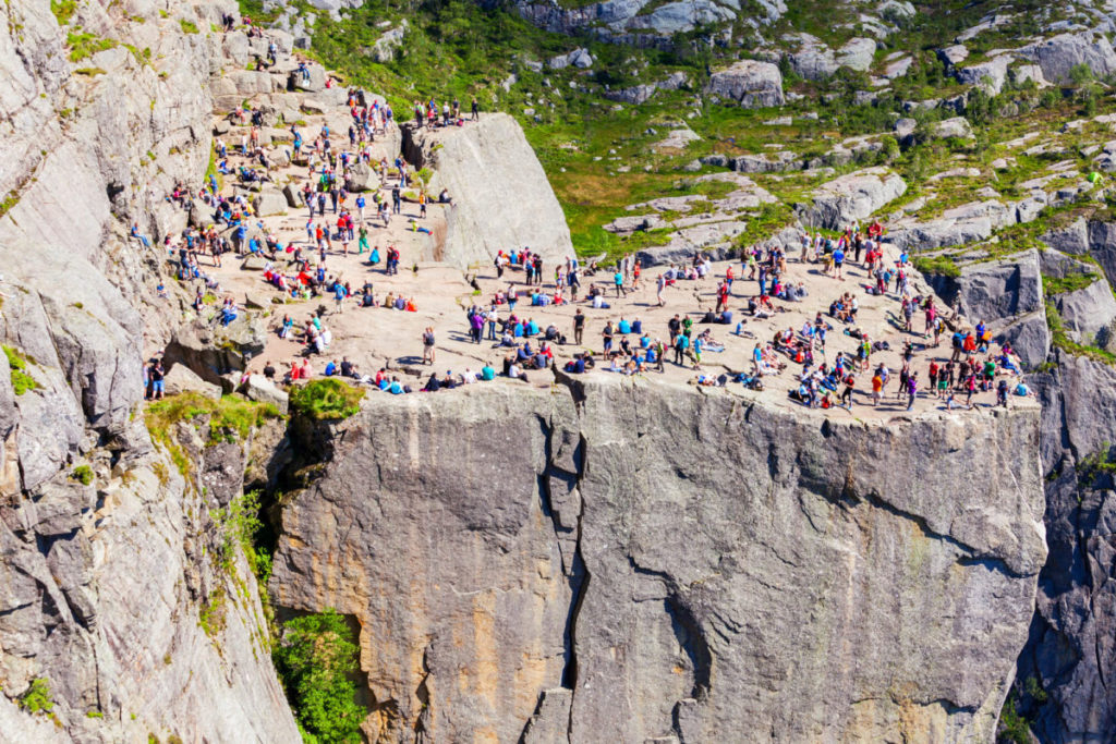 Med najbolj obiskanimi in popularnimi vrhovi je na primer polica Preikestolen (tudi Pulpit Rock), ki se dviga nad fjordom Lysefjord. Prav tu na gore slabo pripravljeni instafotografi najbolj ob živce spravljajo reševalce. Sta bila tudi vidva priča pohodnikom v neprimerni obutvi, ki so za dobro fotografijo pripravljeni ogrožati življenje?