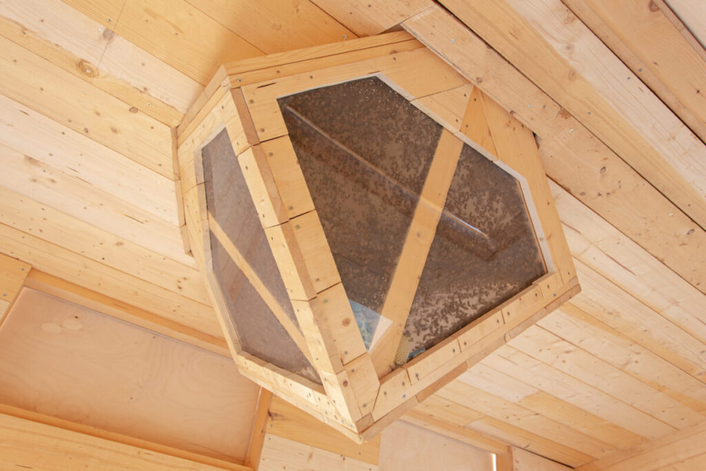 Na jugu Italije so ob nedavnem svetovnem dnevu čebel čebelarski navdušenci in prostovoljci postavil prav poseben čebelnjak. Znotraj kontrukcije namreč stoji postelja, kjer lahko gostje zaspijo ob brenčanju delavnih čebel. S stropa pa se v bivalni del spušča prav poseben steklenjak, skozi katerega lahko kar s postelje opazujete čebele na delu. Okoli hiške je skrbno postavljenih devet panjev.