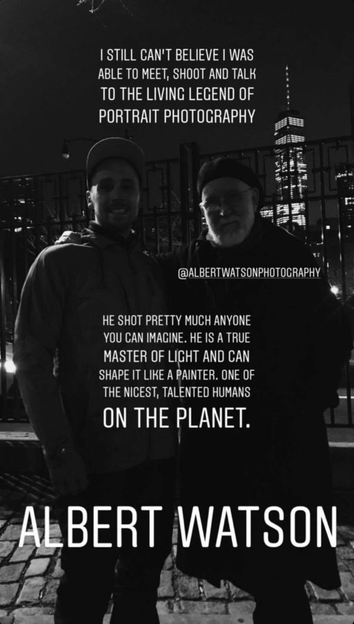 Med snemanjem reklame za BMW v New Yorku sem spoznal legendarnega fotografa Alberta Watsona, ki je bil tudi glavna osebnost reklame. Je avtor znanega portreta Steva Jobsa in pa ljudi kot so David Bowie, Kate Moss, John Travolta, Mick Jagger, Quentin Tarantino, Albert Hitchcock … Seznam se nadaljuje v nedogled. Gospod v svojem sedeminsedemdesetem letu še vedno aktivno fotografira in ravno med snemanjem reklame je imel fotkanje s trenutno super zvezdo Bello Hadid, na katerega sem se upal sam povabiti. Med samim fotografiranjem sem ga spraševal po njegovem pristopu k osvetlitvi svojih subjektov, saj se sam večinoma ukvarjam s svetlobo, kljub temu, da upravičeno večina ljudi misli, da je največji del direktorja fotografije kamera.