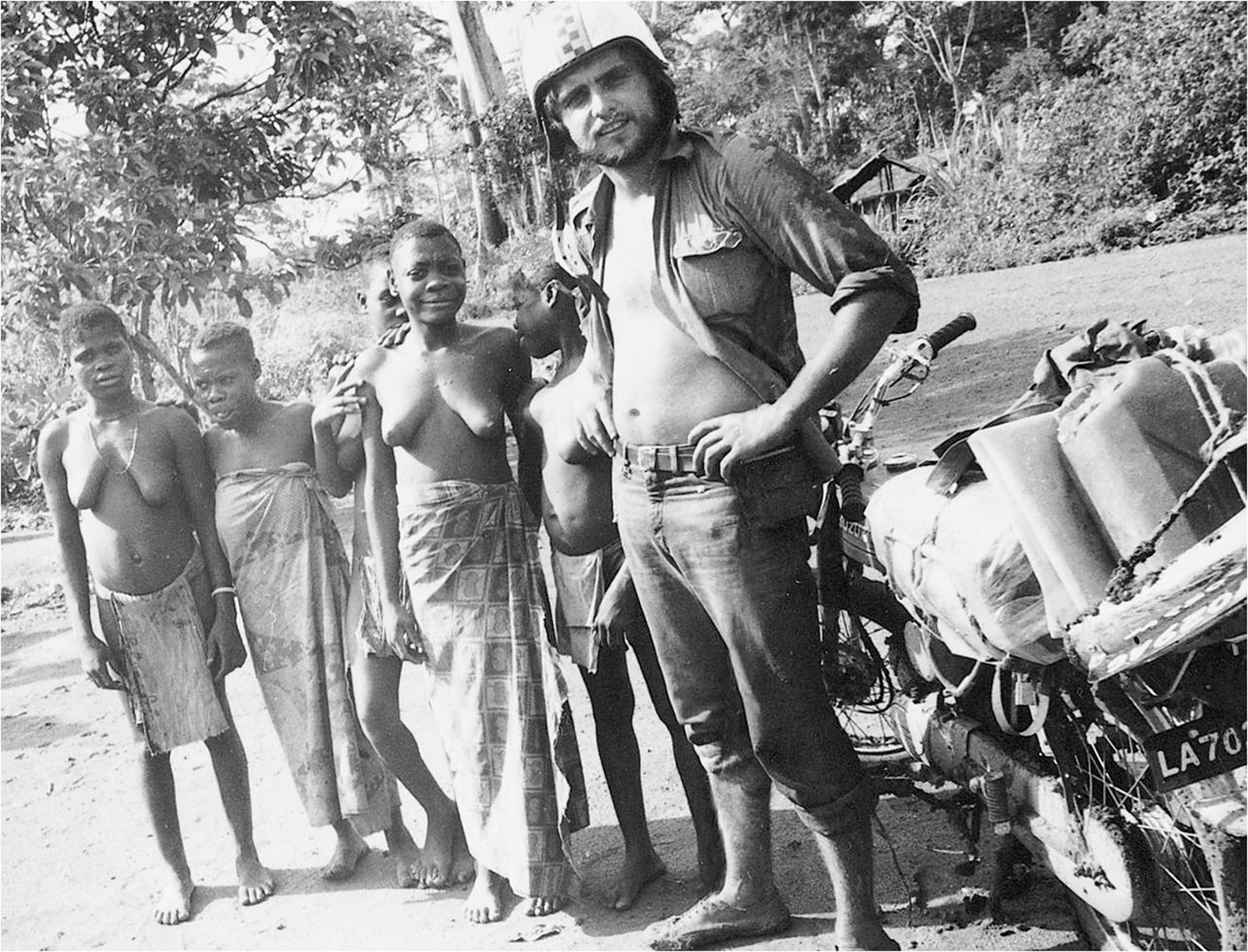 Prvi motor v Afriki, leta 1978, skupaj s pigmejskimi lepoticami.